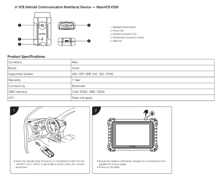 Autel MaxiVCI VCI 200 is a VCI (Vehicle Communication Interface) device, which is used with MS906 PRO and ITS600K8 tablets to do vehicle diagnoses.