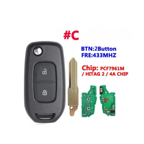 For Ren-ault 2 button flip remote key with 433Mhz 4A-PCF7961M Chip No Logo (Please choose model)