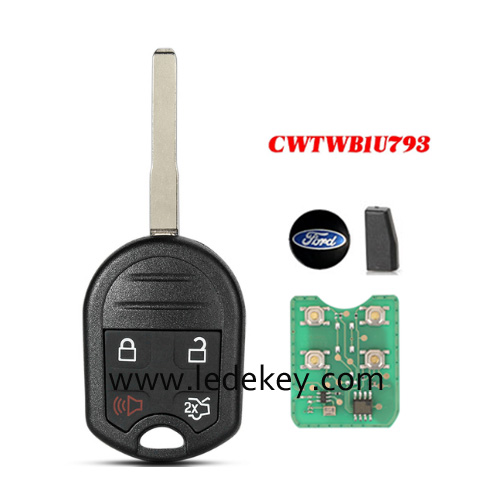 Ford 4 button remote key HU101 blade with 433Mhz with 4D63 80bit chip FCCID CWTWB1U793