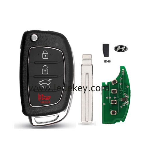 Hyundai 4 button flip remote key middle blade 315Mhz ID46 chip