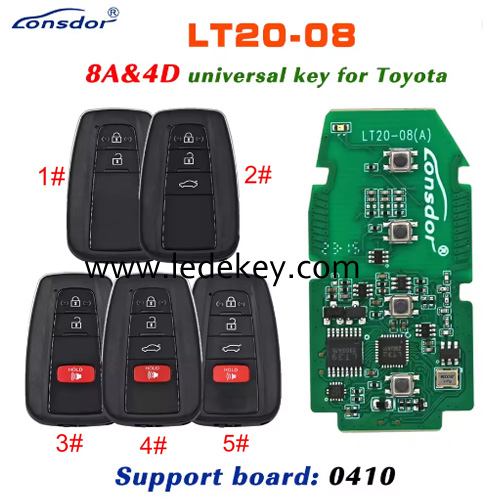 Lonsdor LT20-08 Smart Key Board PCB With Key Shell 8A Chip Board #: 0410 For Toyota