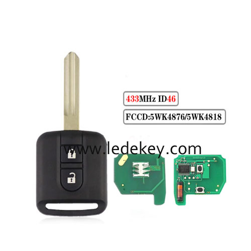 Nissan 2 Button Remote Key with 433Mhz PCF7946 Chip FCC: 5WK4876/818