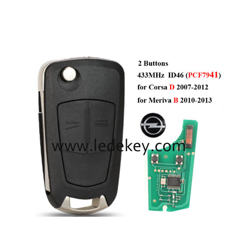 Opel 2 Button Flip Remote Key  with 433MHZ  ID46&7941 Chip for Opel Corsa D 2007-2012, Meriva B 2010-2013