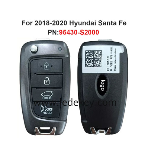 Original PCB Hyundai 4 Button Remote Flip Key For For 2018-2020 Hyundai Santa Fe  Remote 433MHz  PN Number 95430-S2000 FCCID TQ8-RKE-4F39 RKE-4F39