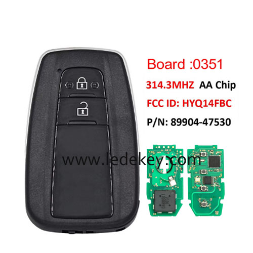 Toyota 2 button Smart Key 314.3Mhz AA chip For Toyota Camry RAV4 Prius Board# 231451-0351 P/N: 89904-47530 FCC ID: HYQ14FBC Keyless-Go