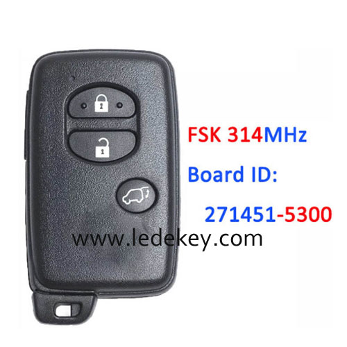 Toyota 3 button SUV Smart Key FSK 314Mhz For Toyota Corolla Prius IQ Vitz Ractis Aqua Board ID:271451-5300