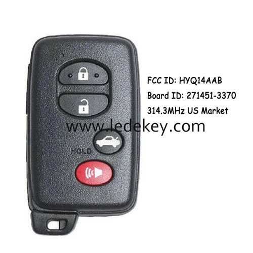 Toyota 4 button Smart Key 314.3Mhz For Toyota Avalon Camry Corolla Prius 4Runner Land Cruiser 2007-2014 Board ID:271451-3370 E P/N: HYQ14AAB