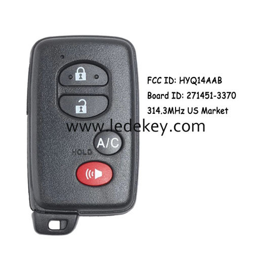 Toyota 4 button Smart Key 314.3Mhz For Toyota Avalon Camry Corolla Prius 4Runner Land Cruiser 2007-2014 Board ID:271451-3370 E P/N: HYQ14AAB